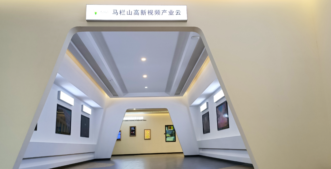 “马栏山高新视频产业云” 打造了一个小型产品展示长廊,以艺术化的结构展示马栏山入4K纪录片制作工艺等云网一体化的产品,并在此走廊尽头以LED大屏展示红色经典影视作品的修复成果。