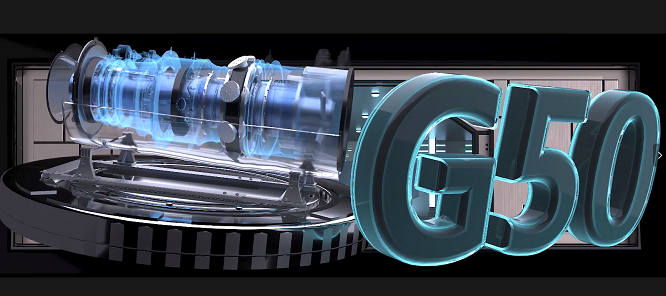 裸眼3D大屏上,滚动播放着东方汽轮机G50燃气轮机、C919大飞机关键零部件等3D视频。