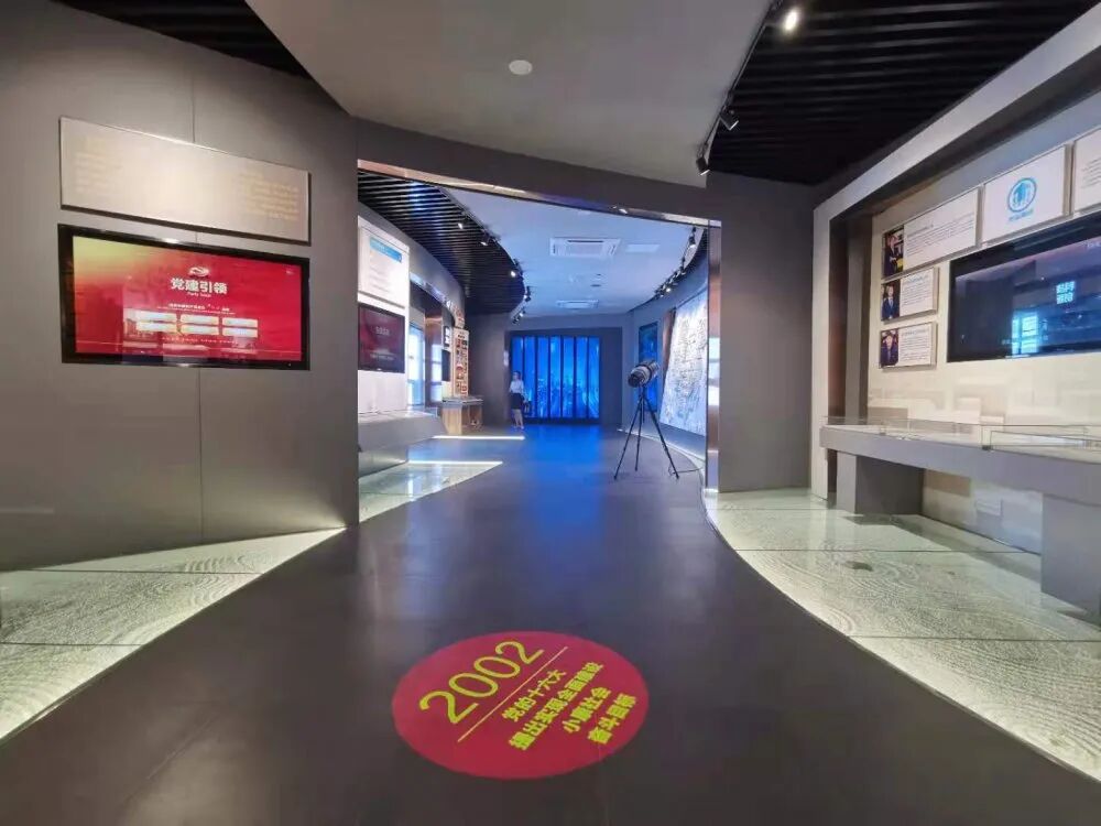 泰玺集团发展史馆占地460平方米,山东百特展览通过展板与展柜结合、图文与史料并用的形式,运用LED大屏、触摸电视、多端同步系统等多媒体设备和现代化手段,记录了泰玺集团55年来在党的领导下,从站起来、富起来到强起来的发展历程。史馆大量运用了跨时代、跨年代、多场景的微缩景观,充分展示了泰玺集团半个多世纪以来始终坚持和依靠党的领导,艰苦创业的奋斗历程,以及认真贯彻落实习近平新时代中国特色社会主义思想,推动高质量发展所取得的成就。