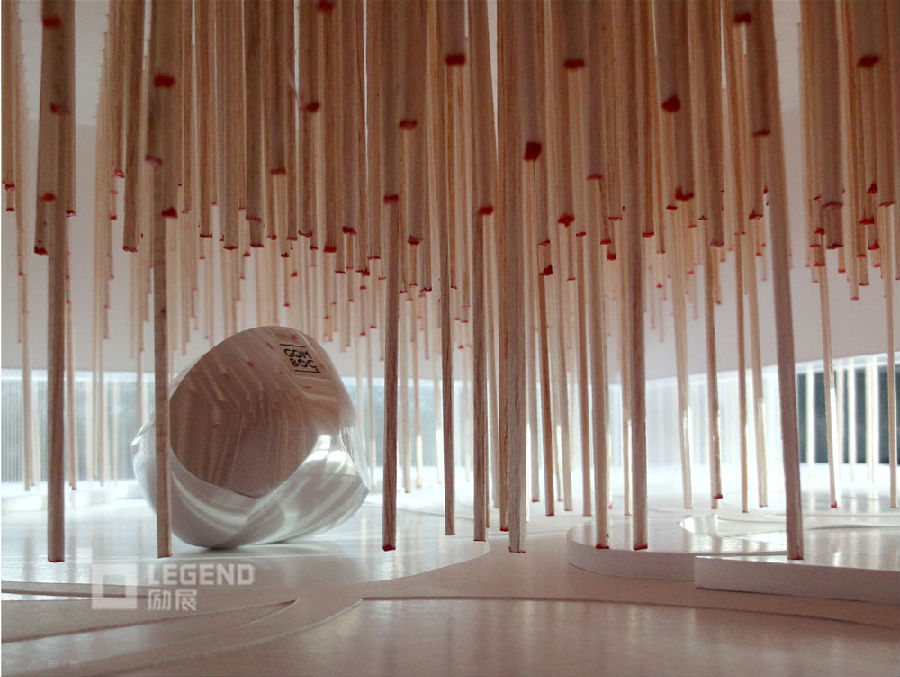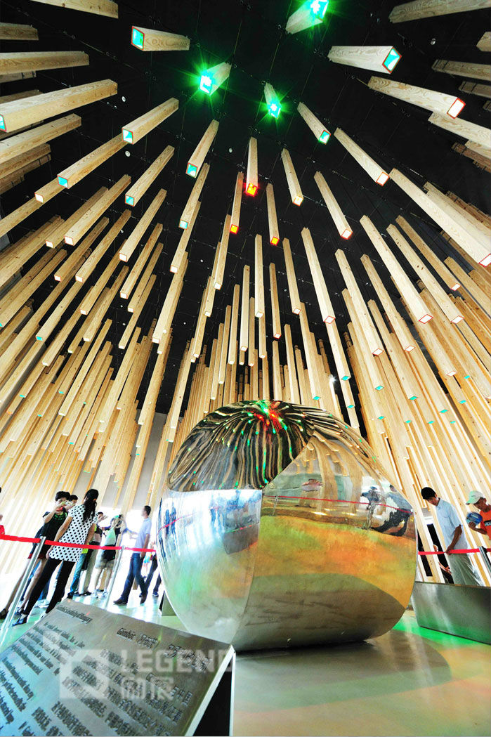 匈牙利馆在建筑表现上有一个很明显的特点——无论馆外馆内,参观者都能看见一根根大约直径10厘米的木套筒,展馆用800根“从天而降”的木套营造出一个“森林”,仅展馆内,就有600根木棍,这些木棍一半是固定的,一半是可动的,固定的有8米高,可动的有3.5米高。这些木套筒在展馆内形成了高低不同错落有致的布局,更有趣的是每个木套筒都配有灯光和音响,到时候能通过木棍的上下移动和灯光、音响的变化,营造出河流、广场等等不同的画面,让参观者身在其中感受到不同的意境。