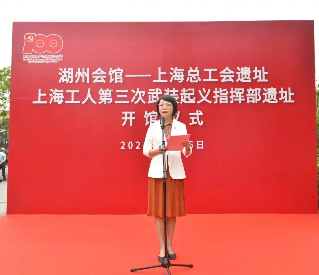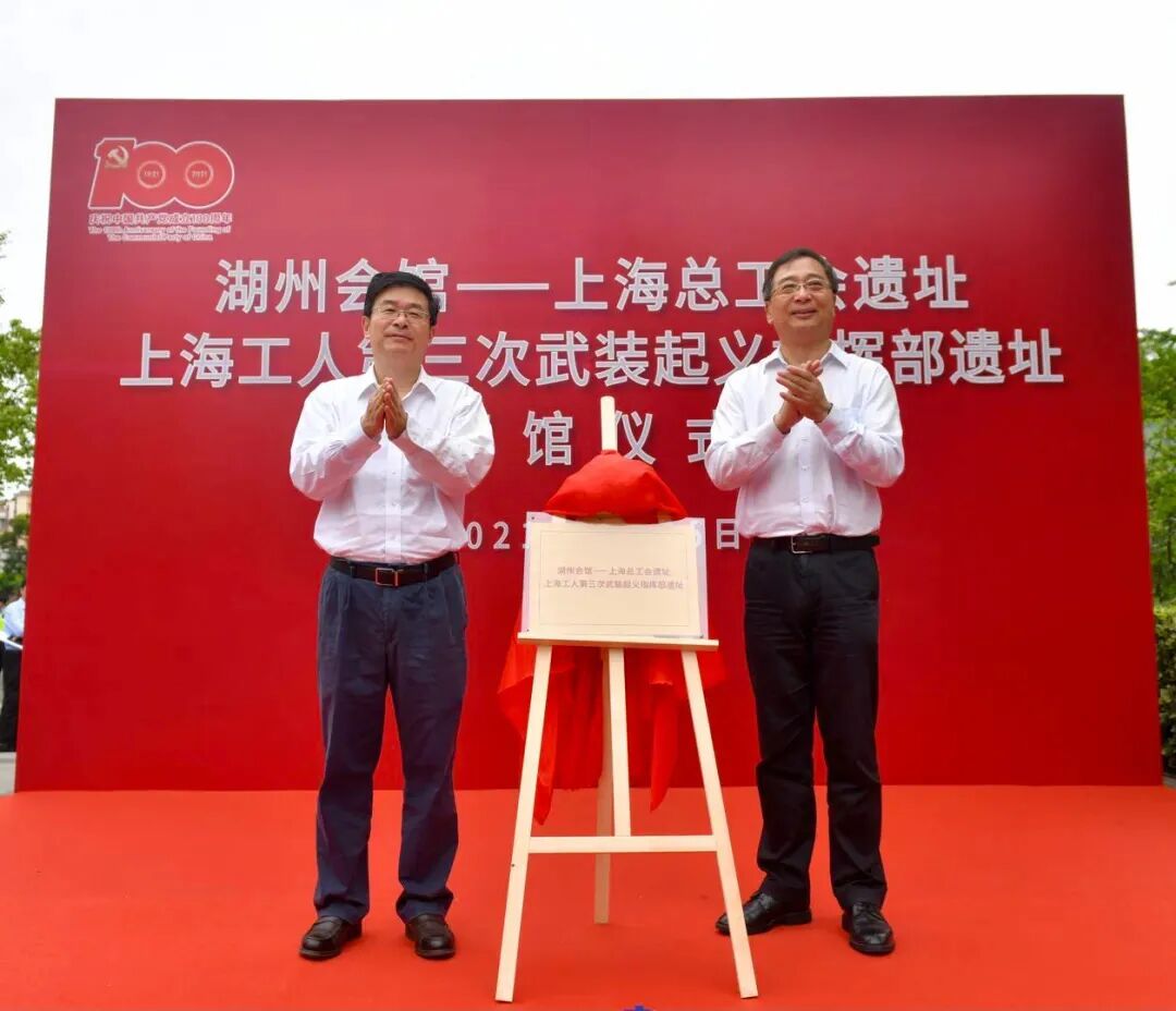 6月16日,湖州会馆—上海总工会遗址、上海工人第三次武装起义指挥部遗址开馆仪式在上海市第三次工人武装起义纪念碑广场举行。上海市人大常委会副主任、市总工会主席莫负春,中共静安区委书记于勇,上海市总工会党组书记、副主席黄红,上海市总工会副主席桂晓燕,上海工会管理职业学院院长李友钟,中共静安区委常委、宣传部部长姜鸣等领导出席活动。