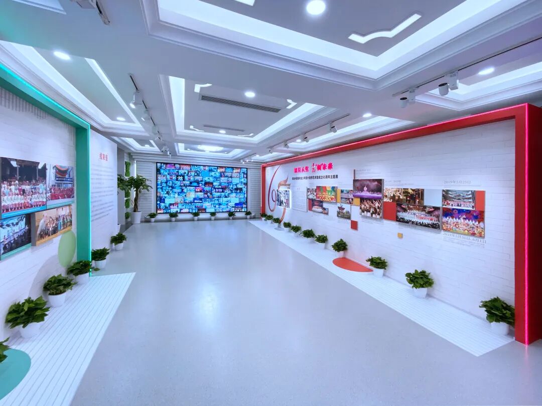 展览通过丰富的陈展内容诠释了艺术团成立至今的重大事件、人物事迹、艺术作品和艺术成果,并特设小朋友喜爱的乐器大师、艺术闯关、AI跳舞游戏等新颖的多媒体互动游戏增强了体验性。
