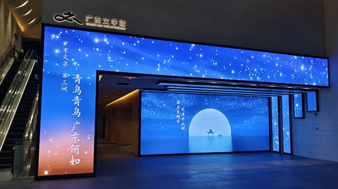 广东文学馆是全国第一个以裸眼3D沉浸式剧场为序厅的文化场馆。基于文学馆序厅的空间特点,时间网络打破传统观影的界限,采用三屏联动技术及裸眼3D设计,为现场观众提供了宽广的视野和震撼的视觉冲击,开启观众与文学之间的交流。