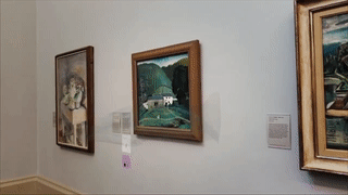 加拿大安大略美术馆举办了名为 ReBlink 的展览,美术馆与艺术家 Alex Mayhew 合作,从馆藏中挑选多件作品进行全新的 AR 创作。观众通过手机或平板电脑下载同名 APP 程序,用摄像镜头对准画作,画作在屏幕上随即呈现动态的效果,更可与人即时互动。
