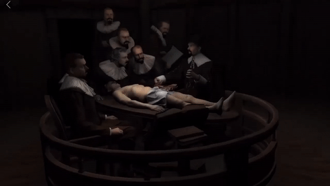 为了纪念荷兰画家伦勃朗逝世350周年,美术馆联合荷兰设计机构Capitola开发了一款名为“Rembrandt Reality”的 APP,通过这个程序,观众在通过一扇拱门后,便将走入《尼古拉斯·杜尔博士的解剖学课》这幅画中,亲临现场,观看这群外科医生们完成这场解剖课。