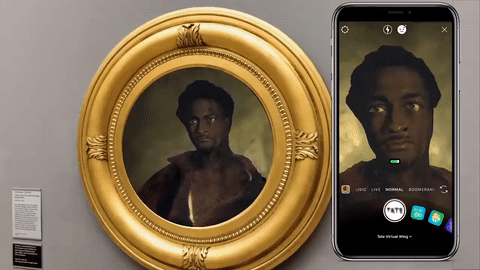 通过使用 Spark AR 平台,Tate Britain 与 Facebook 共同选择了八件艺术作品,并进行了重新布置。观者通过使用手机的相机扫描激活 Spark AR,便可以获得一个新的观看艺术作品的维度。这些被挑选的艺术作品往往有着不寻常的或者鲜为人知的故事,通过 AR 技术,画作背后的故事得以重新呈现。