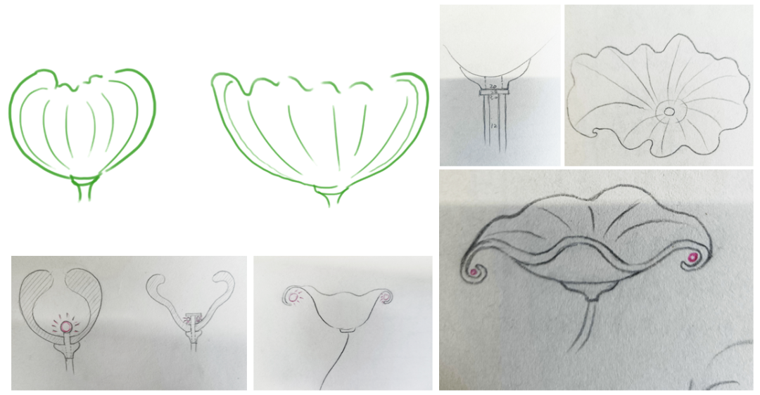 以海百合的有机形态为灵感,打造一组组仿生花瓣展台,托起项目模型。