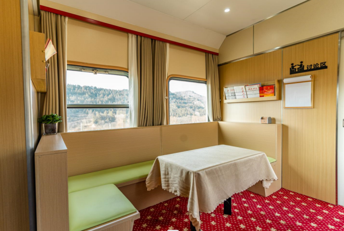红色体验车厢、移动的学习专区、主题式休息空间。