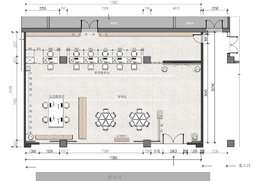 3.自助服务区:自助区桌椅、自助查询机、自助打印设备