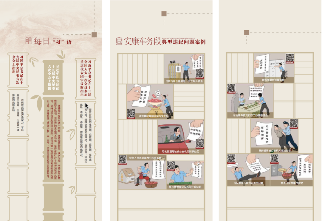 比如:廉政内容用“竹子”做设计造型;违纪违法的事件,用“监狱铁栏杆”造型为设计语言,传达信息。