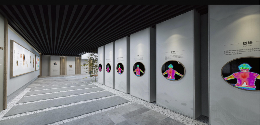 而中药炮制厅则是展示我国独有的制药技术——中药炮制,在古代通过炮制可以减毒、可以增效、是中医临床用药的显著特色。结合微缩幻影场景,复现经典炮制制作情景,通过动态展示可吸引参观者进一步了解炮制艺术。第三部分热敏灸,其实是在守正中医文化的基础上,再创新高,通过动画演示,生动地将六种神奇的热敏现象展现于参展者眼前,突破传统技术,挖掘新疗法,让参展者看到中医传统文化的突破,进一步了解灸疗好处。