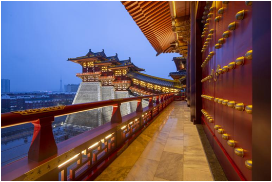 三层整层为业态规划区;四、五、六层为仿唐艺术铜古建,主要分布于四层城楼、连廊、朵楼、阙楼、五层城楼和六层城楼区域。