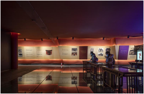 遗址区结合现有的水泥梁柱基础,将斑驳的材质肌理融入展示空间,忠实还原了旧有的建筑结构与氛围。