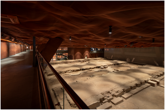 应天门遗址总建筑面积30080平米,建筑层数9层;总展陈面积25000平米,展陈区域六层: