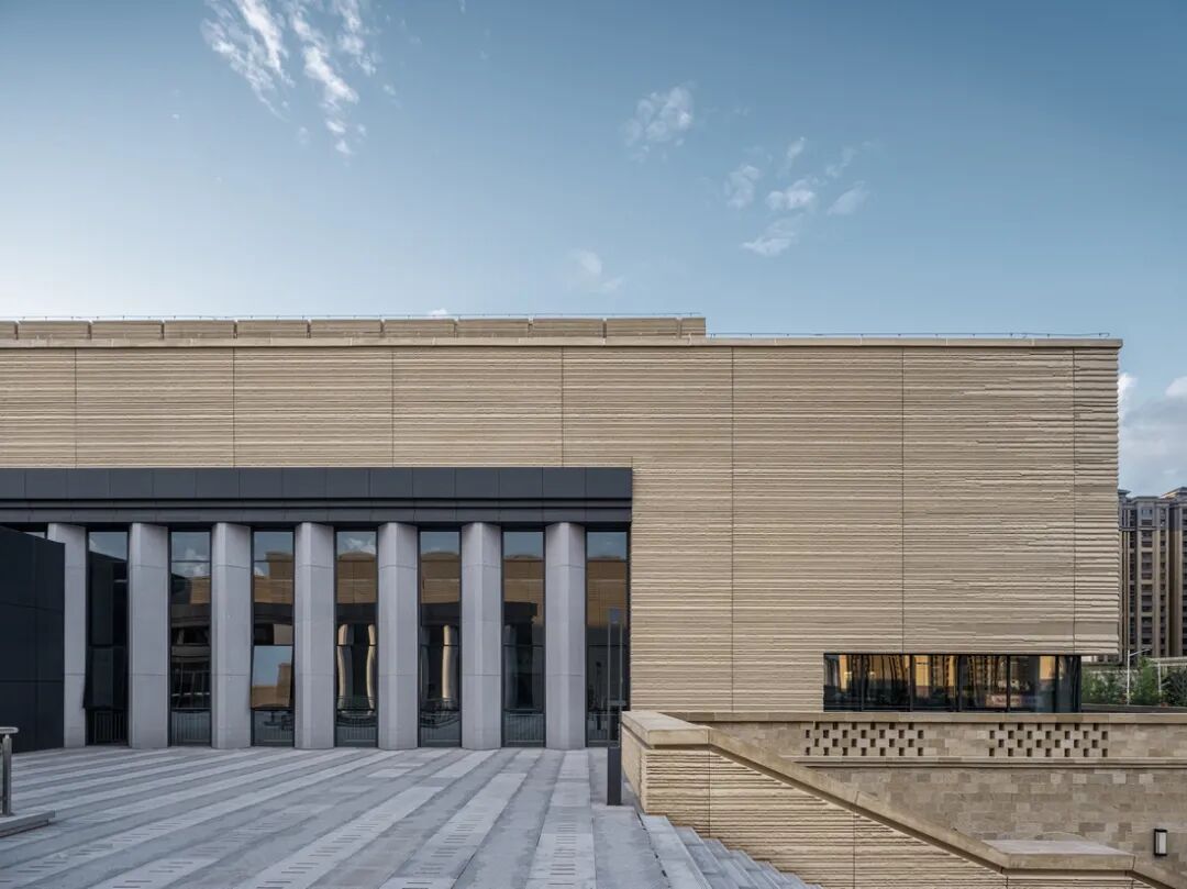 延安大学新校区体育中心包括拥有4060个座位的综合馆、训练馆和游泳馆。我们工作室经过反复推敲,将室内设计的整体风格定义在灰色基调的轻工业风基础上,注入鲜明色彩、温润质感和动感造型,传达理性现代的活力,与建筑庄重质朴的外观相得益彰。同时,室内设计将外立面的建筑材料和设计语汇融入室内空间,在内外衔接的公共空间引入“黄土”肌理的烧毛机刨石材和“窑洞”元素的拱廊造型,在呼应建筑在地性的同时颇具形式美感。