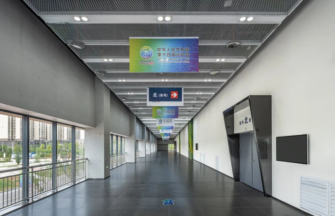 延安大学新校区体育中心室内设计:清水混凝土+金属网板打造运动空间