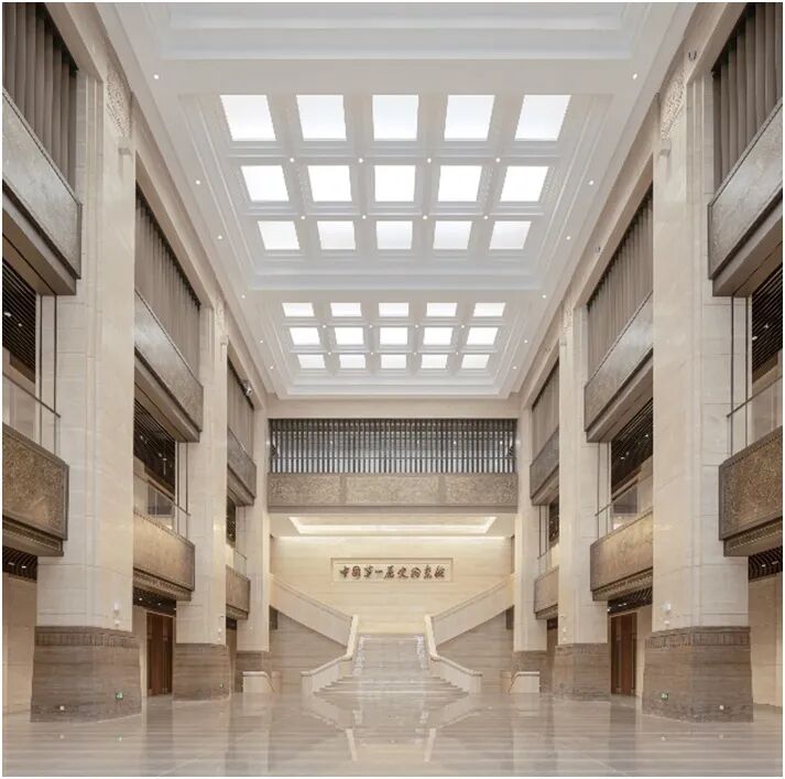 2022年7月6日正式对外开放的中国第一历史档案馆,又简称“一史馆”。该馆建筑设计由清华大学建筑设计研究院院长庄惟敏院士领衔完成,清尚设计研究院张庆华团队完成了重要空间的装饰设计工作。整个场馆设计施工历时近3年时间,开放伊始,即获得社会广泛好评。