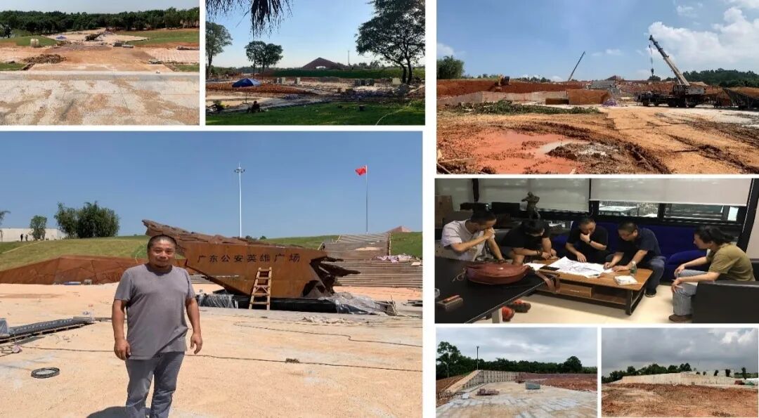 然而一件作品的完成并不是一蹴而就的。经过广东省公安厅党委书记李春生、公安各级领导与干警的多轮讨论研究与现场指导,项目总设计师穆金山与穆朕带领清尚设计团队顺利完成图纸设计与现场创作工作,全心尽力打造出了广东最大的公安红色教育基地。
