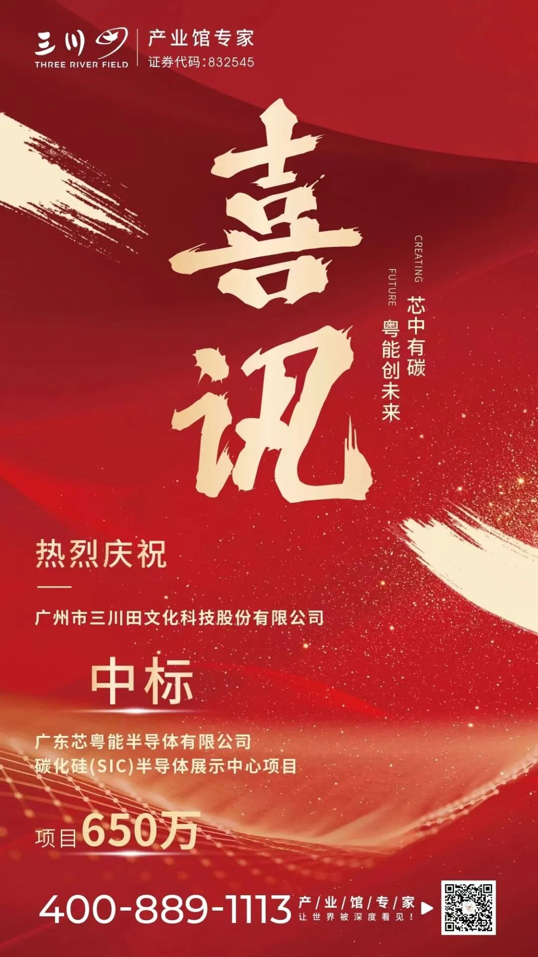 三川田中标广东芯粤能半导体有限公司碳化硅(SiC)半导体展示中心项目