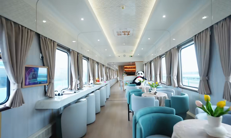 专列主打适老化改造(如包厢扶手、医护随行);推出川青线(三星堆、九寨沟)、跨省线路(贵州安顺、东北景区、新疆游)等,实现“夜行日游、一线多游”的慢节奏旅行;并与老年大学合作开发“摄影游学课”“非遗游学课”(如泸沽湖摄影采风、彝族文化体验等),满足老年人实践与社交需求。列车内设娱乐室、阅读区,引入智能导览系统、影音娱乐设备,提升互动体验,部分列车还提供免费服装租赁和职工拍摄服务,打造“旅拍+文化”新场景。截至2024年,“熊猫专列”累计接待旅客近10万人次。2025年2月订单同比增长50%。