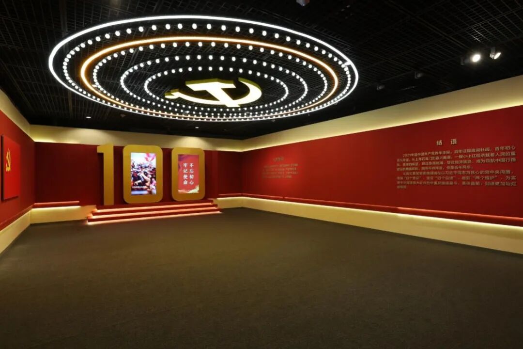 展陈设计强调用视觉语言讲好历史事件,空间以“光”塑造整体意境,渲染历史氛围,带动观展情绪。将见证历史的文物放入历史事件中,突出重点,以点带面,概括、凝炼地展示中国共产党的革命历程。让文物“说话”;结合场景还原重大历史事件,走进其中身临其境感受历史事件,增强叙事感染力。展览力图让观众在参观中找到百年大党长盛不衰的“密码”,感动于中国共产党一切为了人民的初心和使命,感慨于中国共产党取得政权、建立新中国的艰辛和不易,唤起理想情怀、家国情怀、为民情怀。