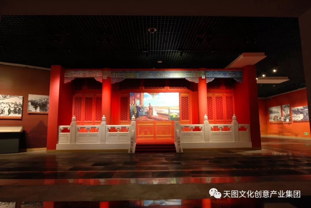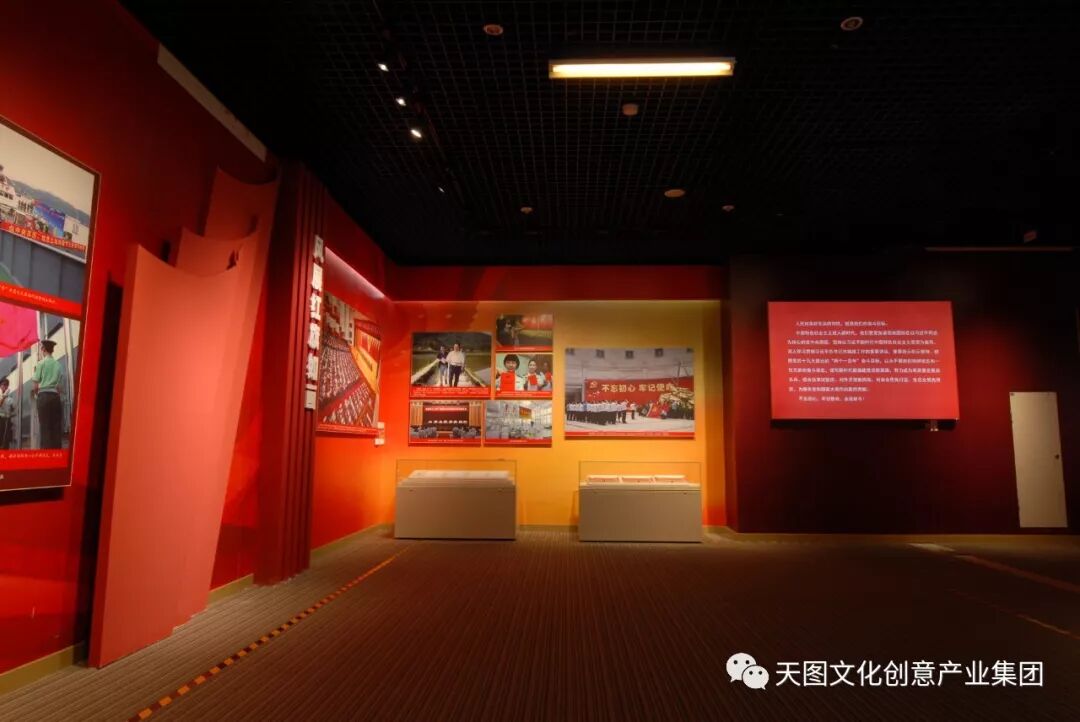 “当家作主站起来”部分运用沉稳大气的红色和浅赭色为主色调,强调空间的平和凝重,利用场景营造、平面立体化呈现手法等呈现主题诠释。