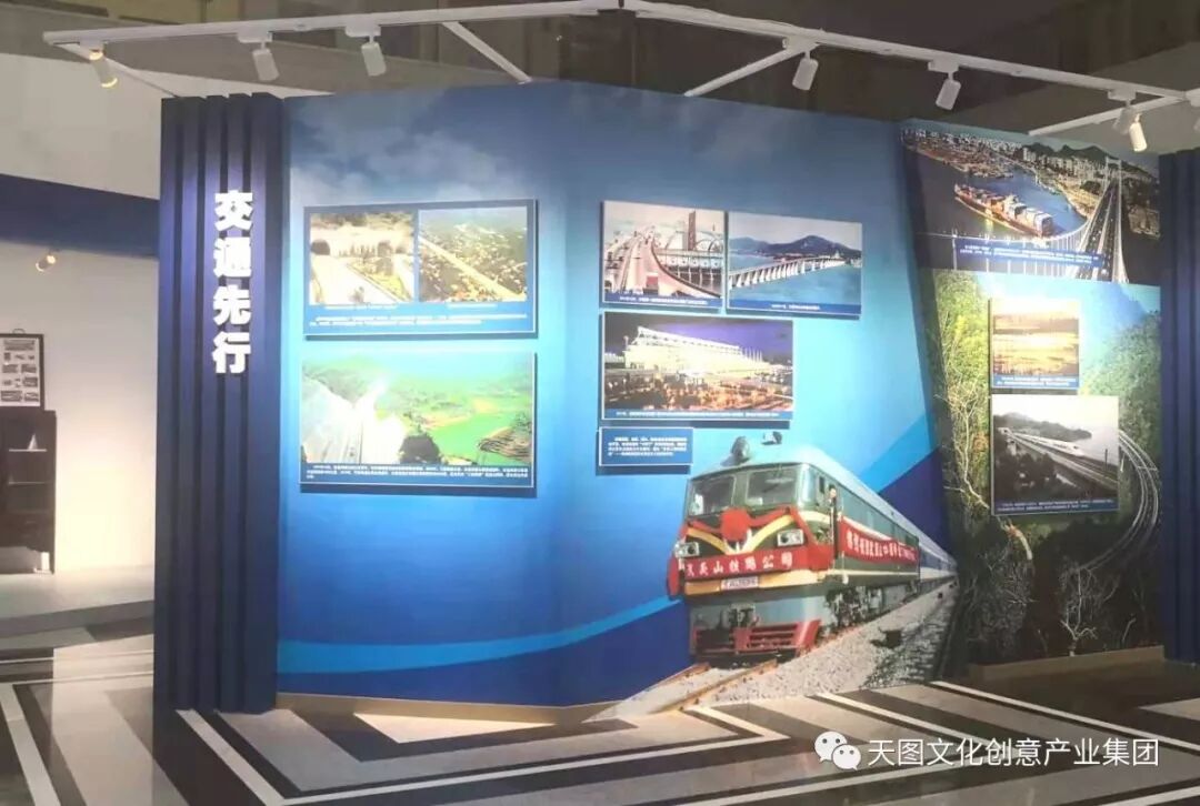 以展板和展品结合的形式将交通、能源、科技建设等领域取得的的重大成果一一展现在观众面前。