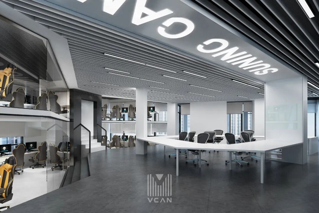 苏宁SNG战队基地是苏宁文娱旗下SNG电竞项目使用的独栋建筑。本设计以活力、创意、年轻,具有设计感的现代办公风格,并融入机械元素,力求所呈现的室内空间在功能上和视觉上都别具一格。
