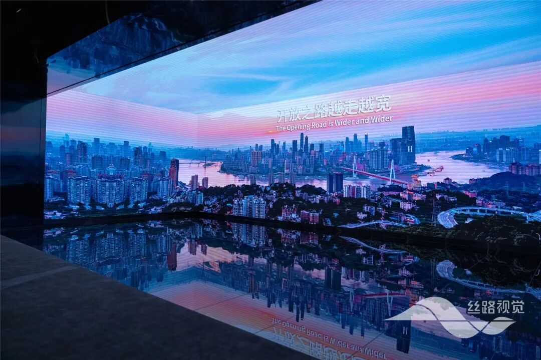 在这个项目中,丝路蓝创意展示团队摒弃传统展馆的陈旧表达,紧扣“开放”主题、融入多元数字创意手段,再次定义重庆政务接待型展馆的新高度。