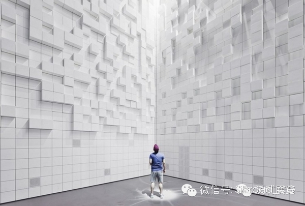 ▼展厅最出众的地方是一个立方矩阵组成的波动空间。