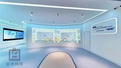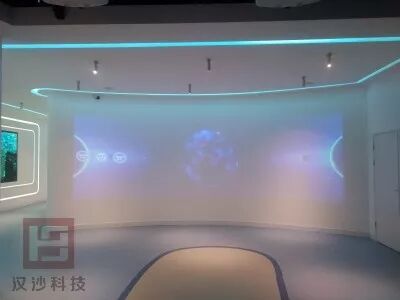 云视讯的后面是沉浸式体验空间,在这里我们还可以体验沉浸式场景和观看PPT,并且通过空中手势可以切换场景和PPT内容,摆脱普通展厅的枯燥无趣。