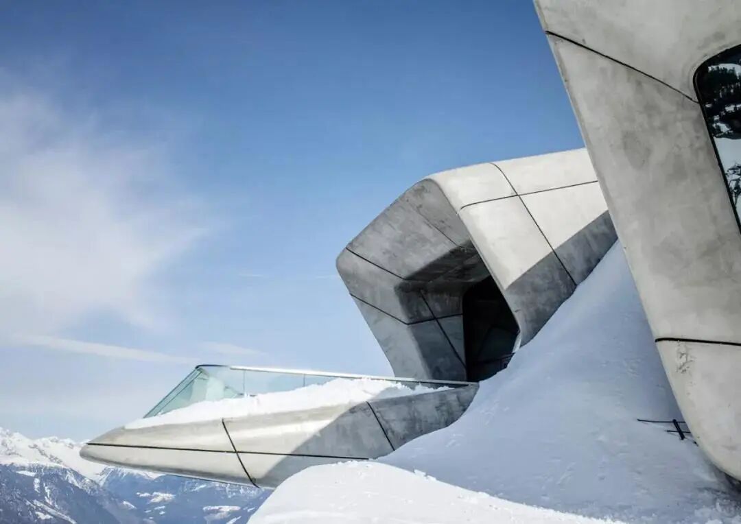 其中最新的一座博物馆名为皇冠(Corones),嵌在一座山顶的一侧——是已故建筑师扎哈·哈迪德设计的一座混凝土空间。