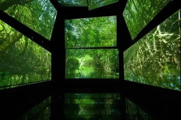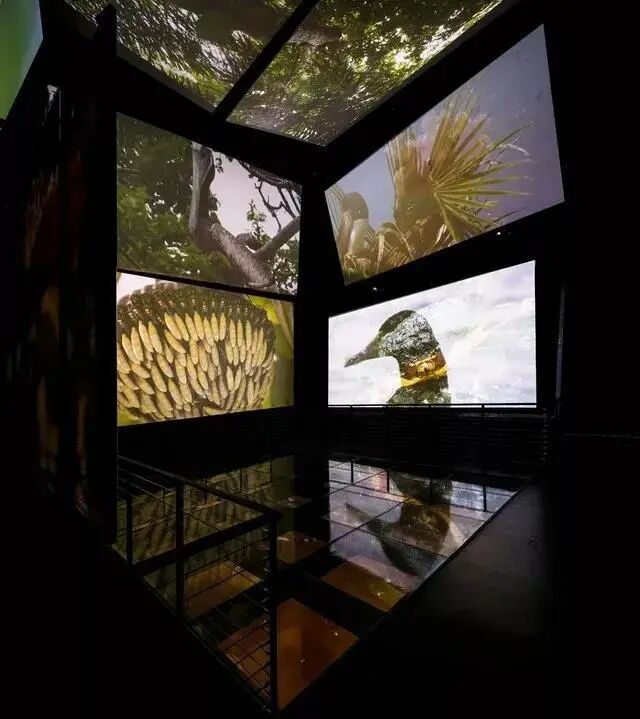 在入口处,14米高的彩色玻璃墙中,展示着由当地科学家们收集的巴拿马植物及动物照片。