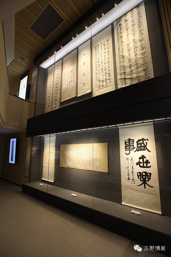 结尾永恒兰亭版块将纵向7米空间一分为二,一层展示30年兰亭书法节、二层陈列兰亭书法奖作品,超长及超高形通柜的运用,完美展陈作品,充分体现近现代书法家对兰亭文化的传承与发扬。