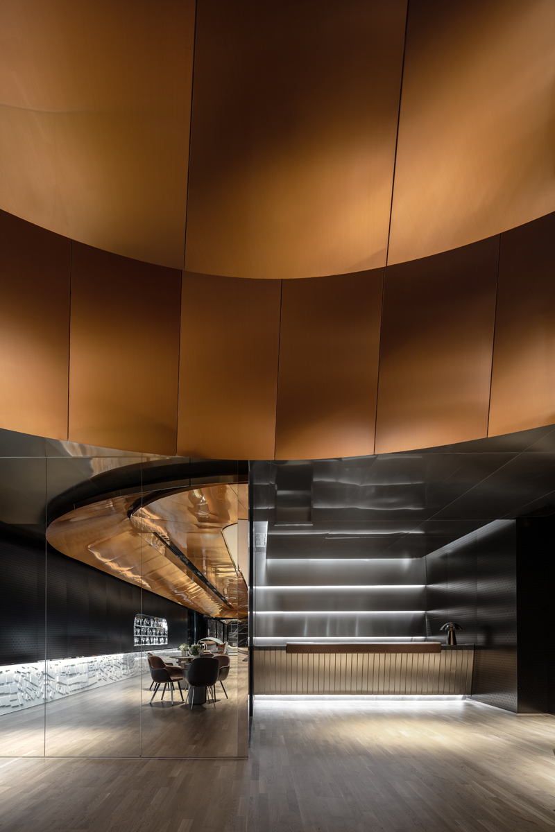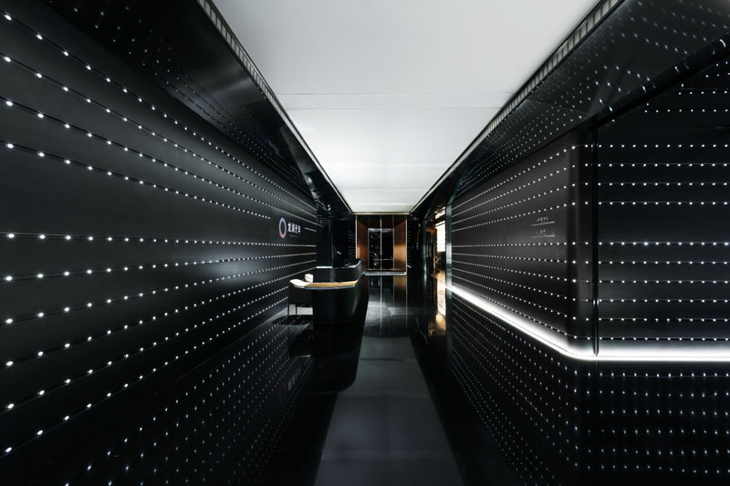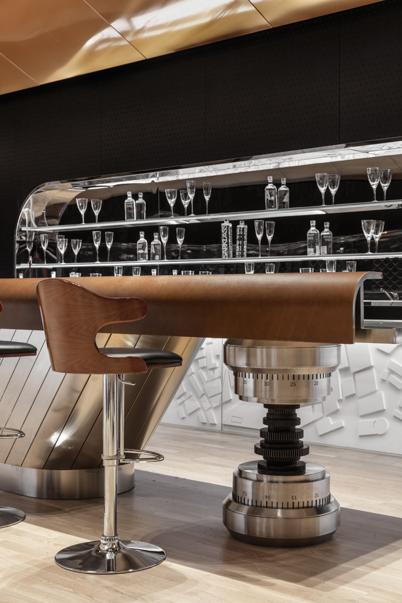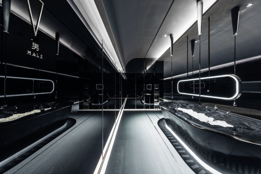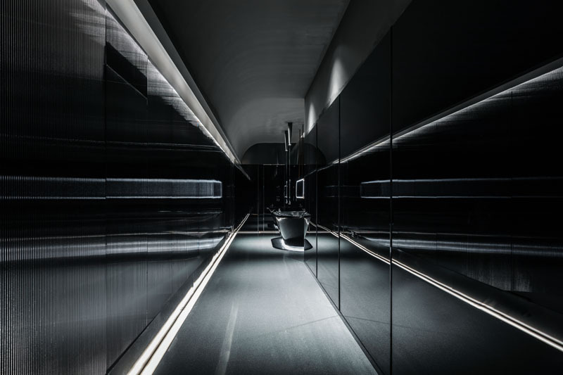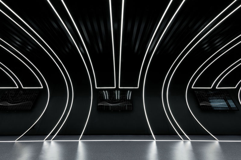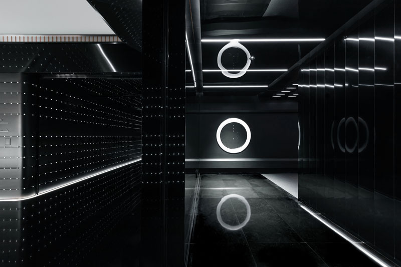 极简的线条造型设计,强化了速度感和科技感,黑色不锈钢镜面则进一步放大了空间的视觉感受和体验,让人迷失在真实的速度与时间之中。