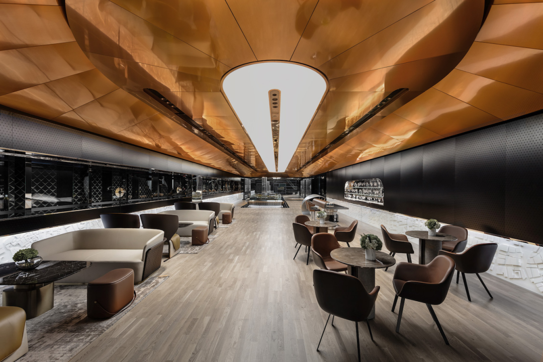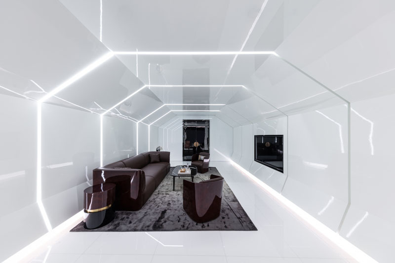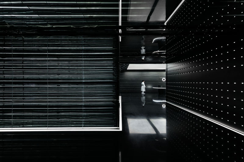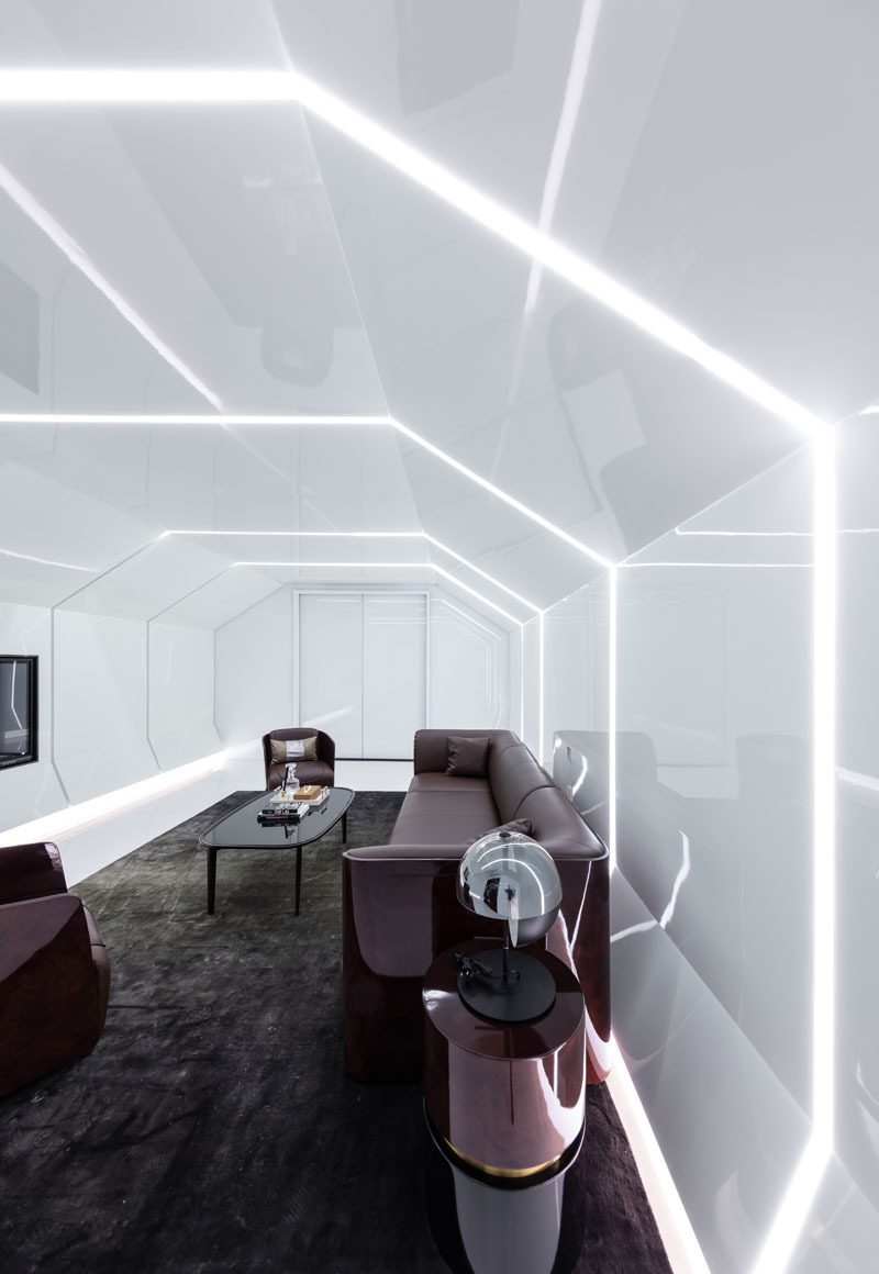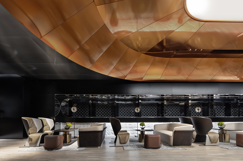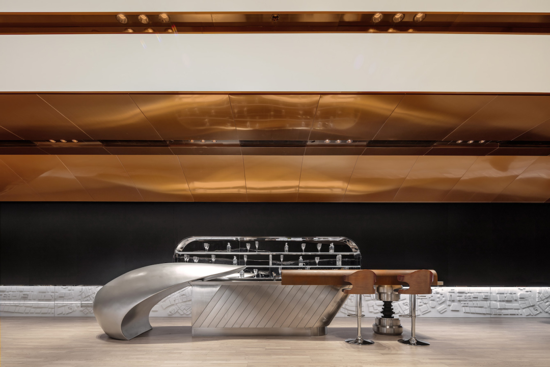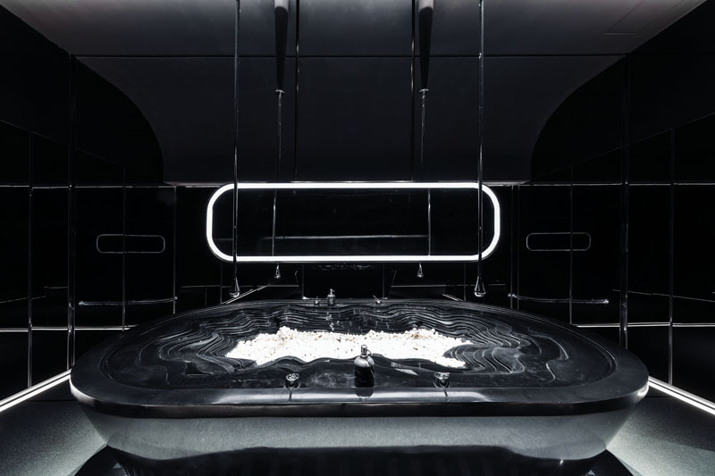 极简的线条造型设计,强化了速度感和科技感,黑色不锈钢镜面则进一步放大了空间的视觉感受和体验,让人迷失在真实的速度与时间之中。