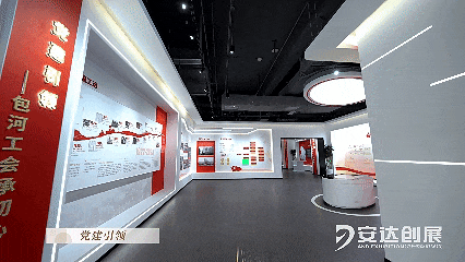 分 “序厅、党建引领 包河工会承初心、匠心引领 包河职工展风采、创新引领 包河品牌铸辉煌” 4个部分,