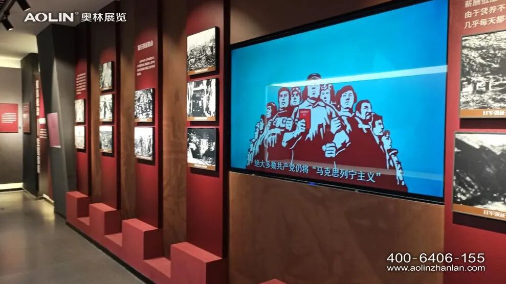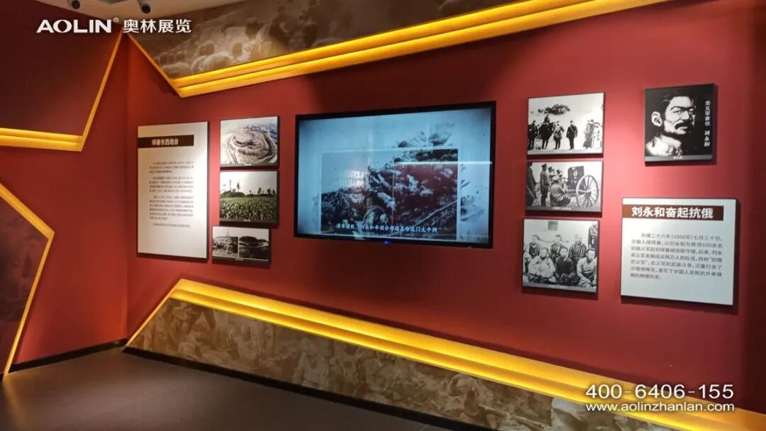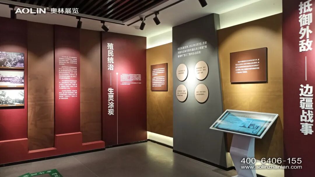 七至八层:鸦片战争后,中国开始沦为半殖民地半封建社会。珲春地处边海防,是帝国主义列强在我国利益的碰撞点。列强们打着各种旗号,侵占珲春领士。面对空前浩劫,珲春各族人民在中国共产党的领导下,进行了顽强的反抗,有力地打击帝国主义嚣张气焰。空间色彩以热血红和历史黄为主 ,同时通过触摸互动、场景还原等形式,为观众带来极具感染力的沉浸式观展体验。