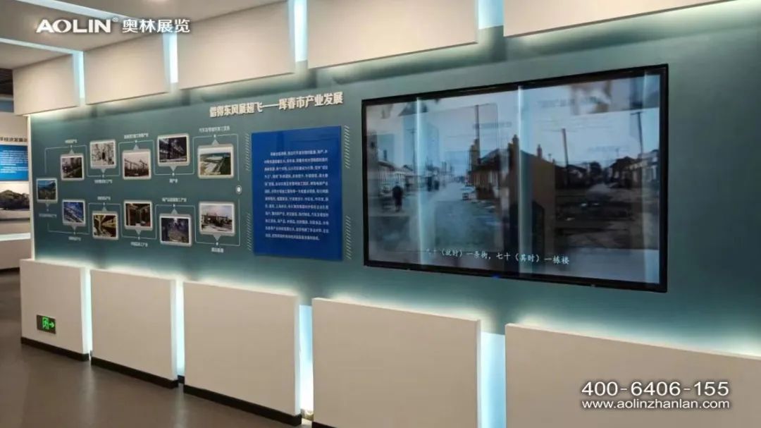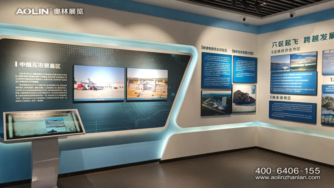 六层:走过历史,立足当下,规划未来。主要展示珲春的城市建设、经济发展以及未来规划和展望,以现代化的表达手段与前沿的设计理念,打造满足当代人民爱国主义教育基地需求的现代化展厅。