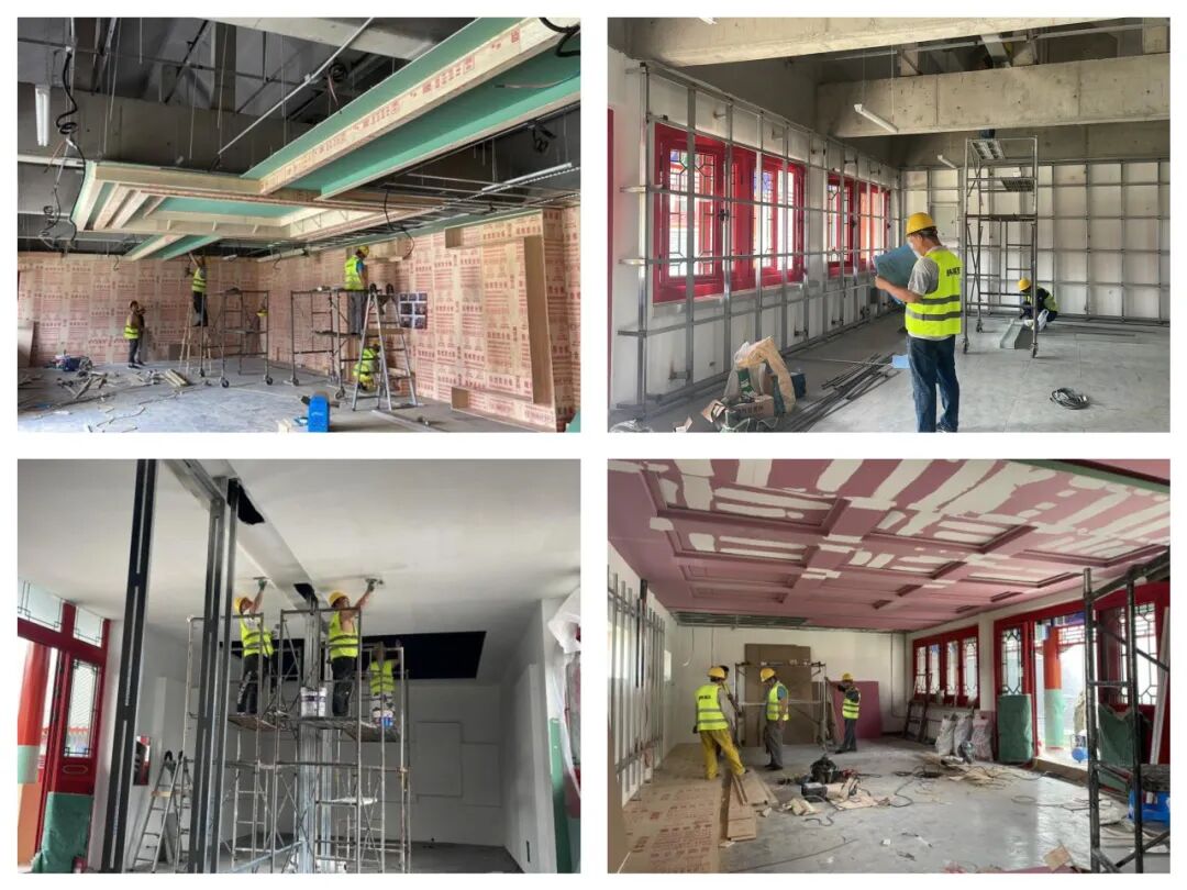 项目后期施工工期非常紧张,为保证公园顺利开园,展馆施工只有交叉作业、紧赶工期。奥林项目团队瞄准目标,扛起压力,加班紧赶工期保证顺利完工。速度与质量兼备,是奥林施工一向的追求和原则,保证施工细节到位,一比一实现效果图与现场的转变,同时注重施工的安全。