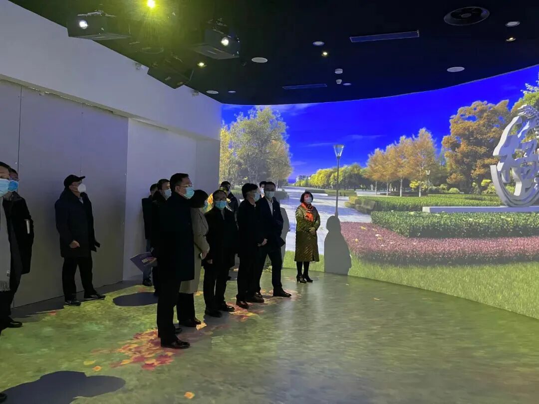我们带来观众来到最后一个篇章——幸福生活篇,我们为观众设计了VR多媒体展项。观众站在指定位置,戴上VR眼镜,置身于城市上空,参观海河教育园、国家会展中心、葛沽特色小镇、小站练兵园、小站稻等津南区多个代表性点位,充分感受津南区的历史文化和魅力风光,畅想津南区的美好未来!