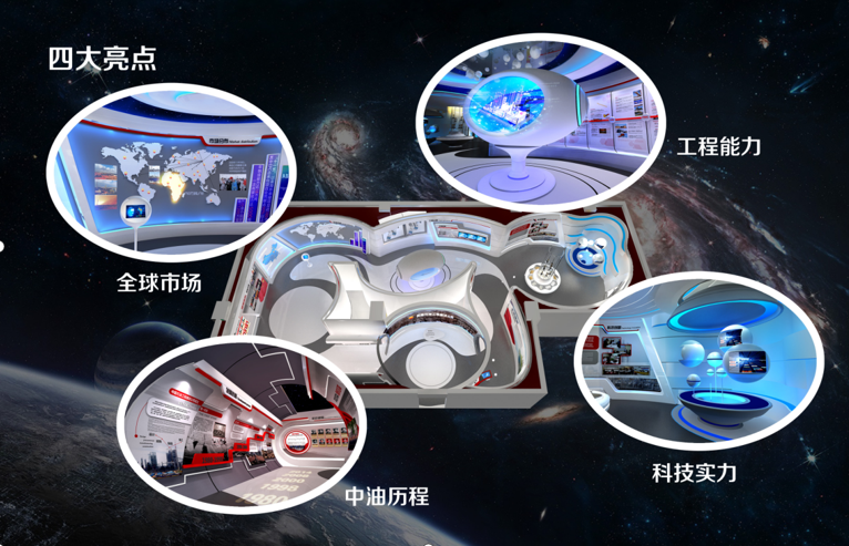 中国石油工程建设公司展厅的设计采用国际前沿的建馆思路,要体现国际化展厅的艺术性与实用性的完美结合。