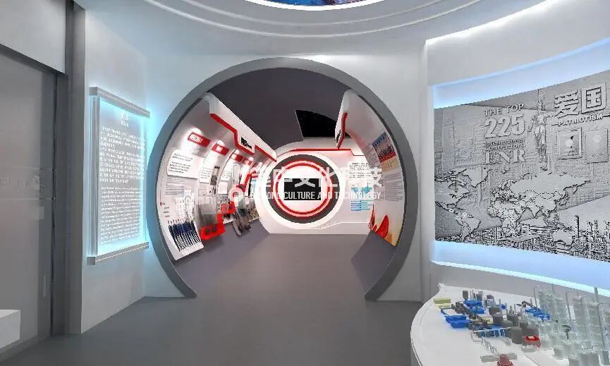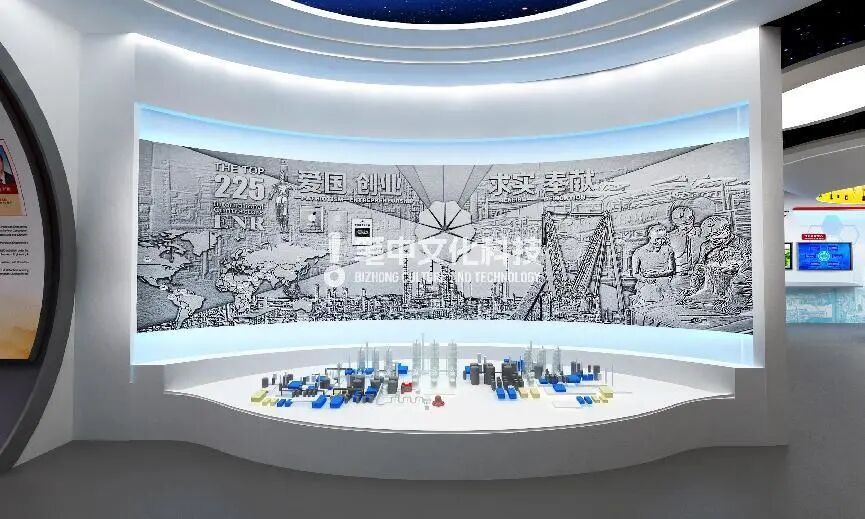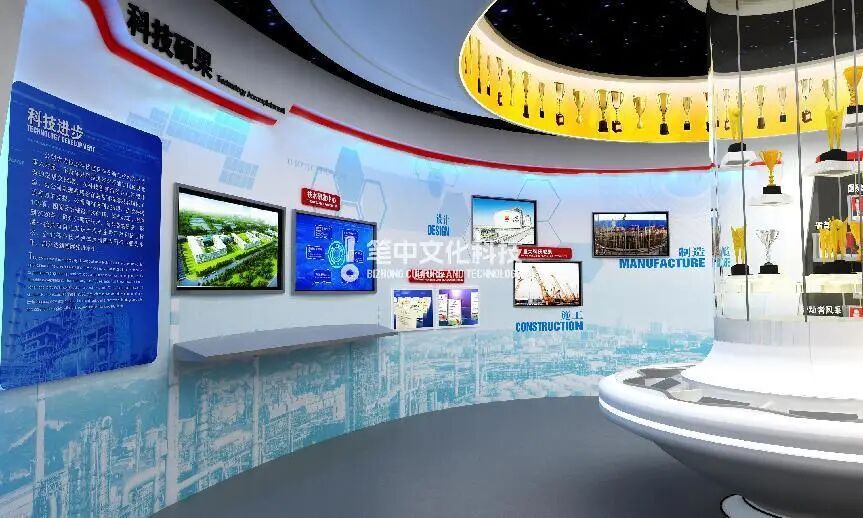 笔中文化科技集团设计中心应用弧线元素进行一体化空间设计,坚持展馆格调统一一气呵成。