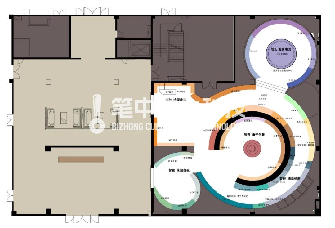 针对于山东鲁能智能企业展厅,笔中文化科技集团的设计风格定为: