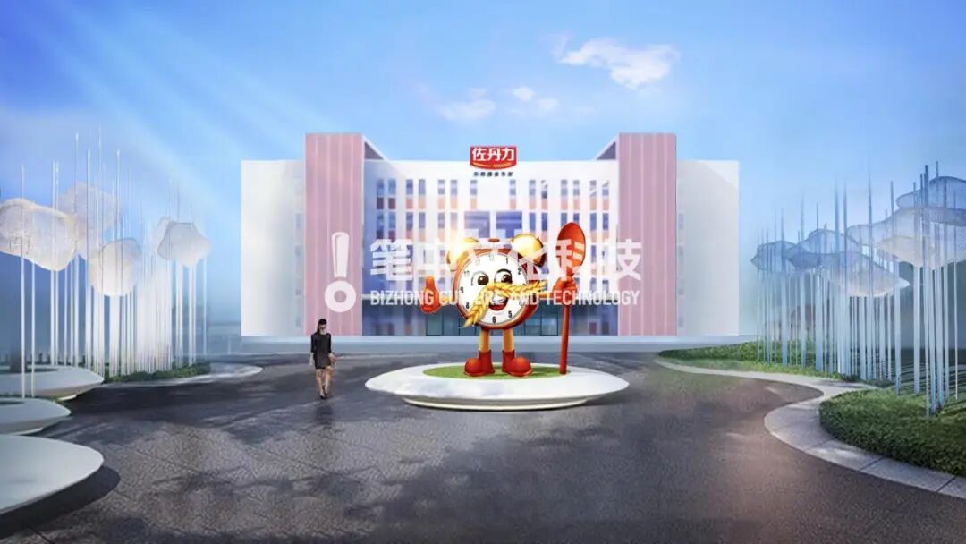 除此之外,整馆都以佐丹力的吉祥物“闹钟人”贯穿始终,传递精神。