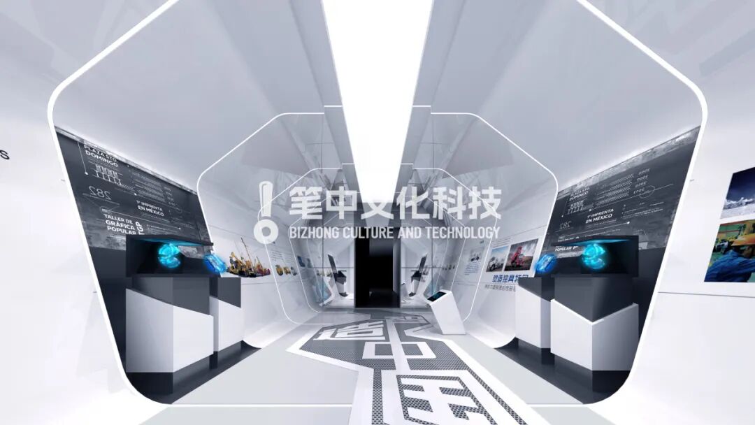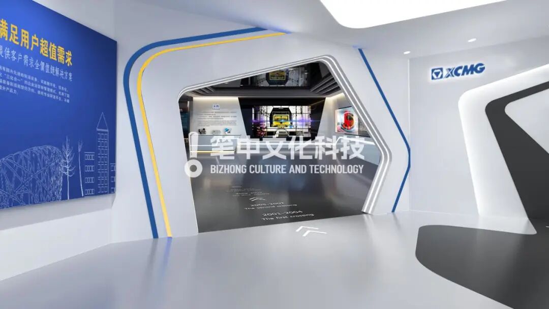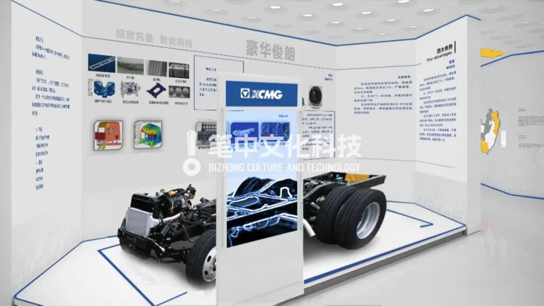 笔中文化科技集团在设计之初,在展厅呈现了成套化起重解决方案沙盘,线上产品展厅VR式呈现,50余款热销设备数字化展示,人机交互,全方位展示80年大国重器的深厚底蕴。