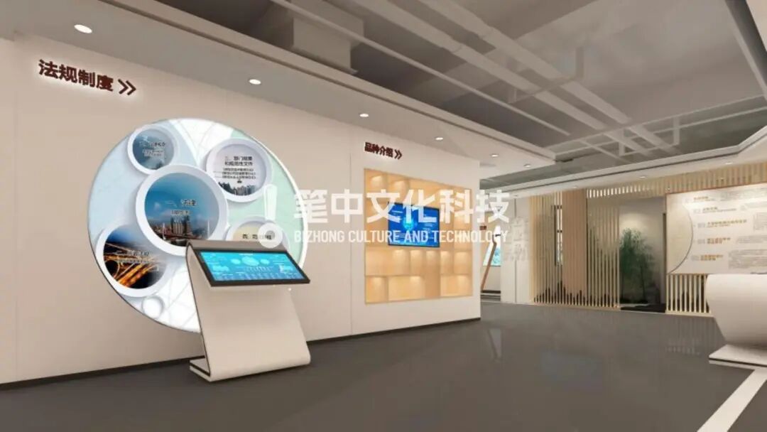 此展区我们设置一个触摸屏参观者通 过点选触控屏幕了解法规制度 ,查看相关法规及制度,空间调性上仍采用暖色调呈现。
