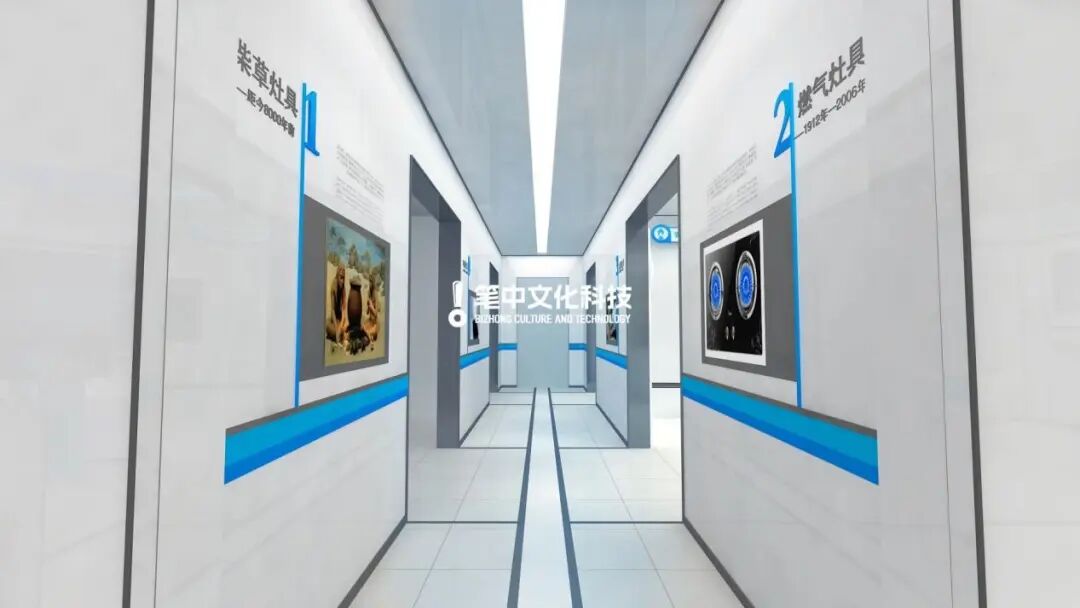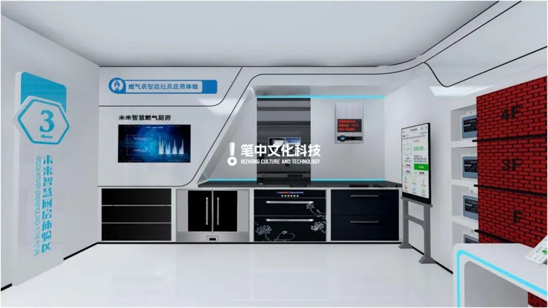 连接各展区的走廊空间展示智能灶具和智能燃气表。