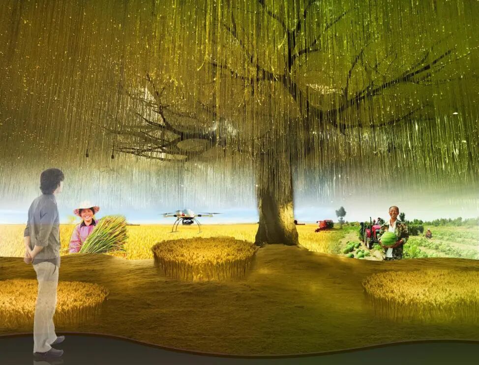化肥本身就是生命要素的转化,形态巨大化的融入具体的展示内容。