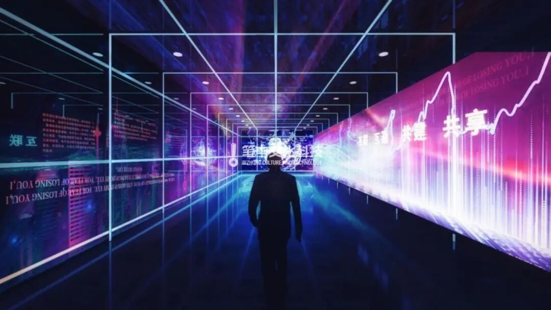 笔中文化科技集团的设计初衷,就是希望观众走进信息通道,“存储”整个航信的业务板块内容然后快速构建信息,最后走出信息通道获取到航信信息。